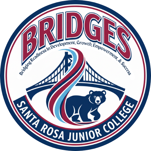 Welcome to SRJC BRIDGES, a summer bridge program that provides holistic support to students looking to get a head start in their college career. The program runs for 6–8 weeks, from June 17th to August 11th(Summer Semester). Students can participate in one of four Bridges offered. Regardless of what someone chooses, they will receive support for their entire journey from a team of dedicated individuals invested in student success. SRJC BRIDGES includes free lunch every day, provides writing and math assistance, fosters community and belonging, and offers early access to campus resources.